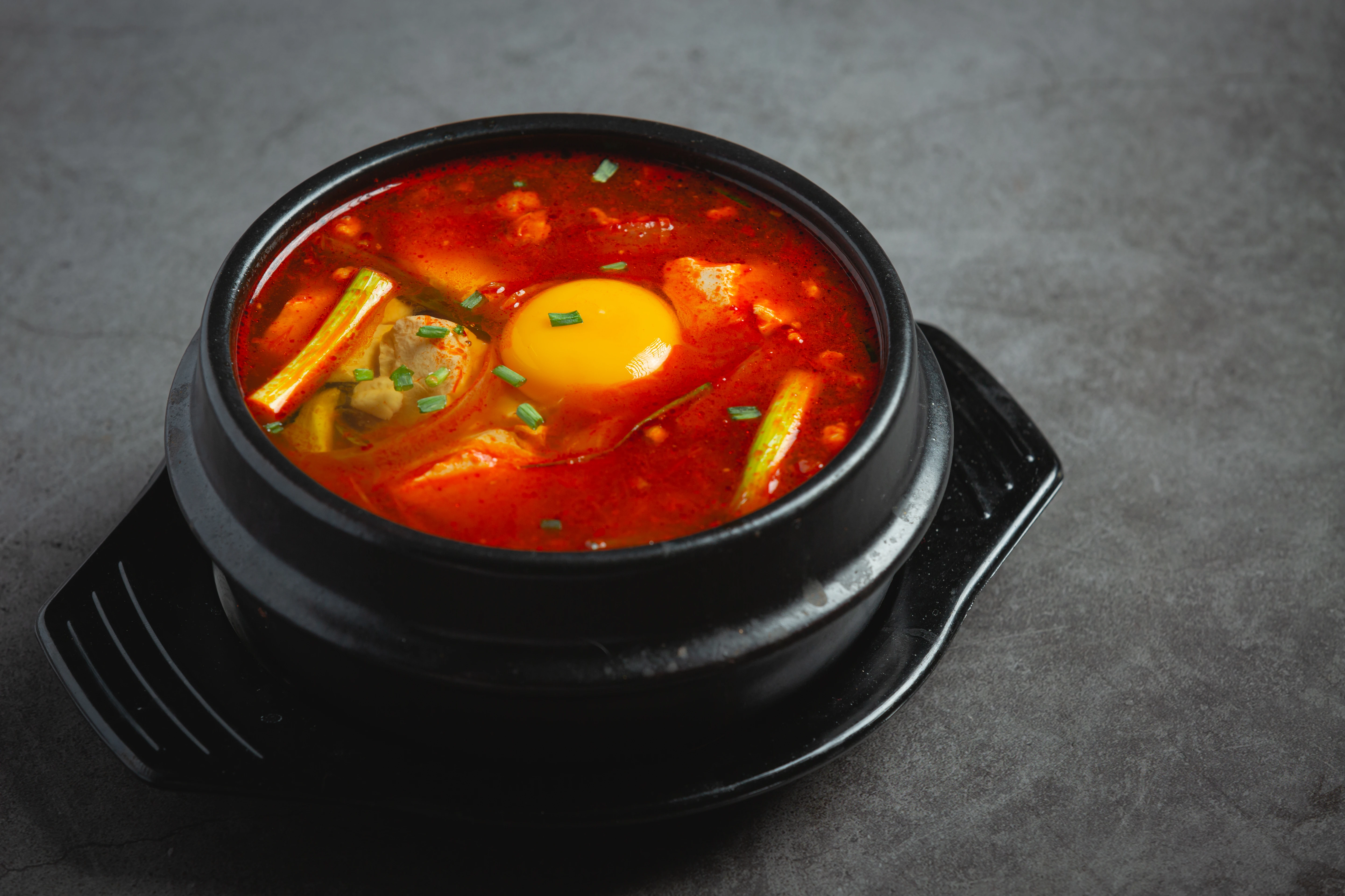 Soft tofu stew is a true classic, known for its silky texture and vivid red broth. Since the tofu requires no chewing, it is very easy on a sensitive stomach, making it the best post-drinking food for those who wake up feeling fragile.