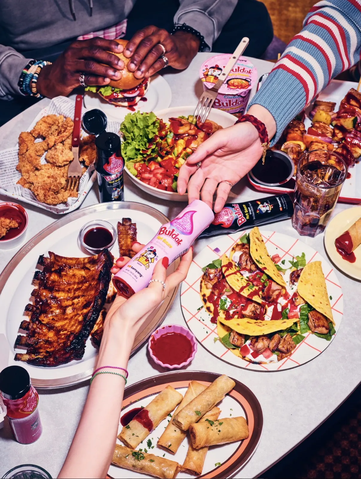 • Casual Weekend with Friends: Put the main Buldak brunch board in the center, then add sliders and egg toast around it so guests can build varied plates without much explanation.