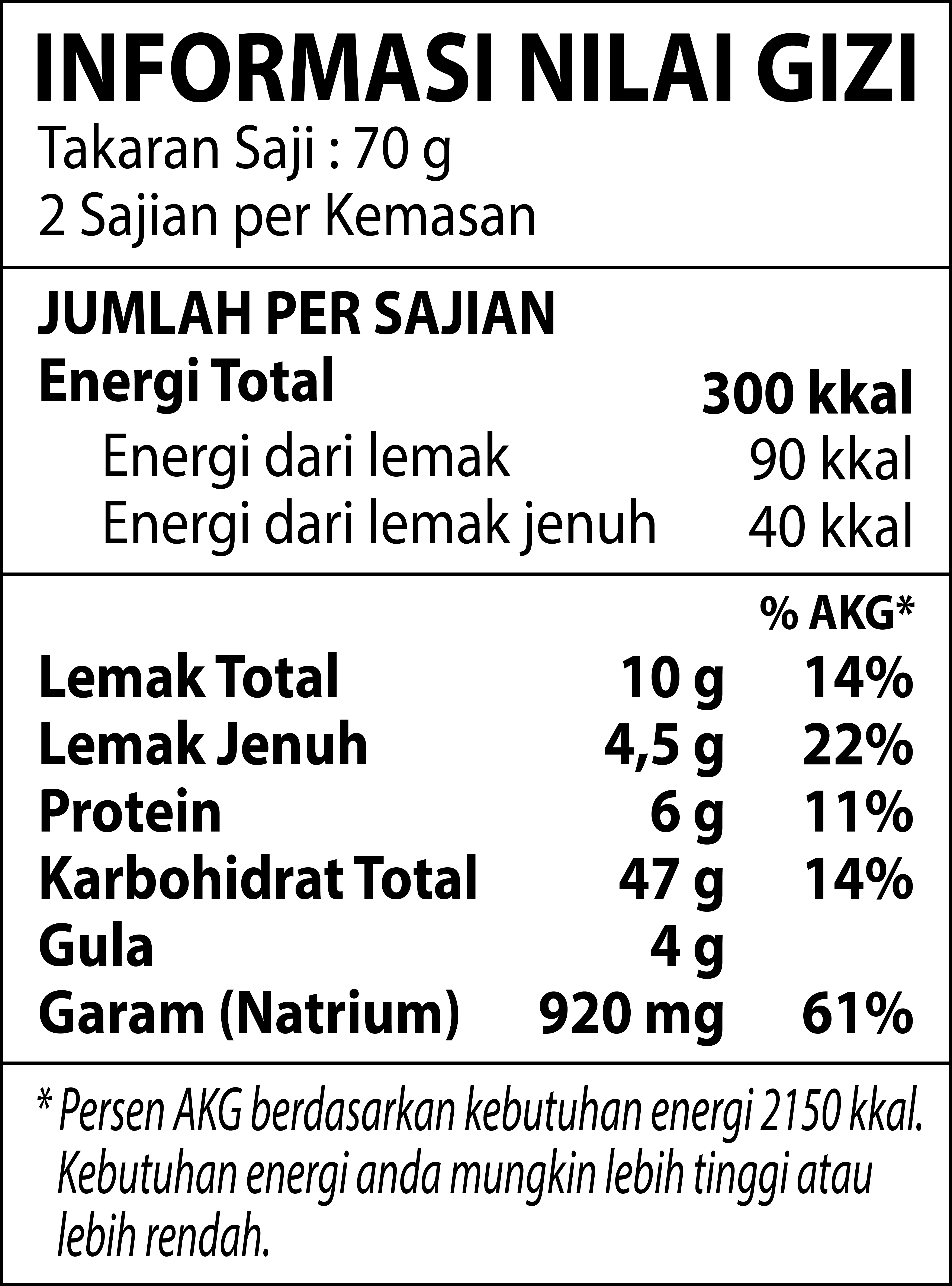 Saus: Air, Kecap (mengandung kedelai, penguat rasa dinatrium 5-ribonukleotida, pemanis alami glikosida steviol), Gula, Perisa Sintetik Rasa Ayam (mengandung penguat rasa mononatrium L-glutamat, antioksidan dl-alfa tokoferol), Perisa Sintetik (mengandung penguat rasa dinatrium 5-ribonukleotida), Bumbu Rasa Cabe Habanero, Minyak Kedelai, Lada Bubuk, Bawang Bombay, Penguat Rasa Mononatrium L Glutamat, Minyak Cabai, Bawang Putih, Minyak Cabai, Pati Modifikasi (mengandung pengawet sulfit), Perisa Sintetik Ayam (mengandung penguat rasa dinatrium 5-ribonukleotida, antioksidan dl-alfa tokoferol), Ekstrak Cabai (0,7%), Perisa Alami, Lada Hitam Bubuk, Bumbu Rasa Kari (mengandung telur, penguat rasa dinatrium 5-ribonukloetida), Bumbu