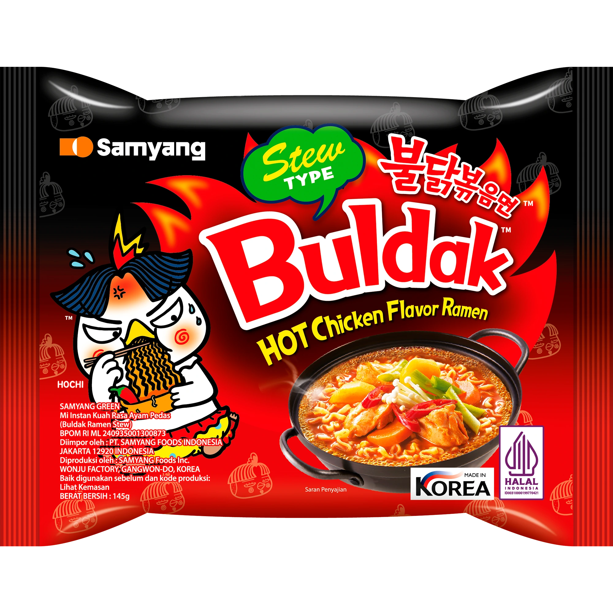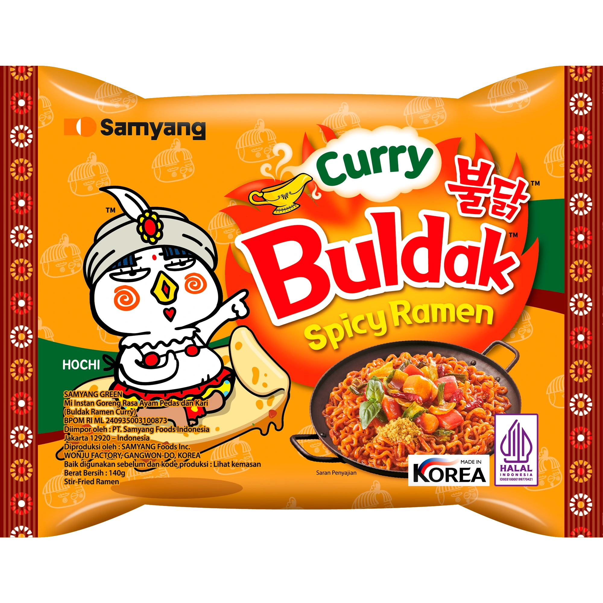 Sup: Air, Kecap (mengandung kedelai, penguat rasa dinatrium 5-ribonukleotida, pemanis alami glikosida steviol), Gula, Perisa Sintetik Ayam (Mengandung Penguat Rasa Mononatrium L-Glutamat, Antioksidan dl-Alfa Tokoferol), Perisa Sintetik Ayam (Mengandung Penguat Rasa Dinatrium 5-Ribonukleotida), Bumbu Rasa Cabe Habanero, Minyak Kedelai, Bawang Bombay, Penguat Rasa Mononatrium L-Glutamat, Bumbu Rasa Pedas, Minyak Cabe, Lada Merah Bubuk, Bawang Putih, Perisa Sintetik Ayam (Mengandung Penguat Rasa Dinatrium 5-Ribonukleotida, Antioksidan dl-Alfa Tokoferol dan Asam Askorbat), Pati Modifikasi (mengandung pengawet sulfit), Cabe Bubuk, Perisa Alami, Lada Hitam Bubuk, Bumbu Rasa Kari (mengandung telur), Bumbu