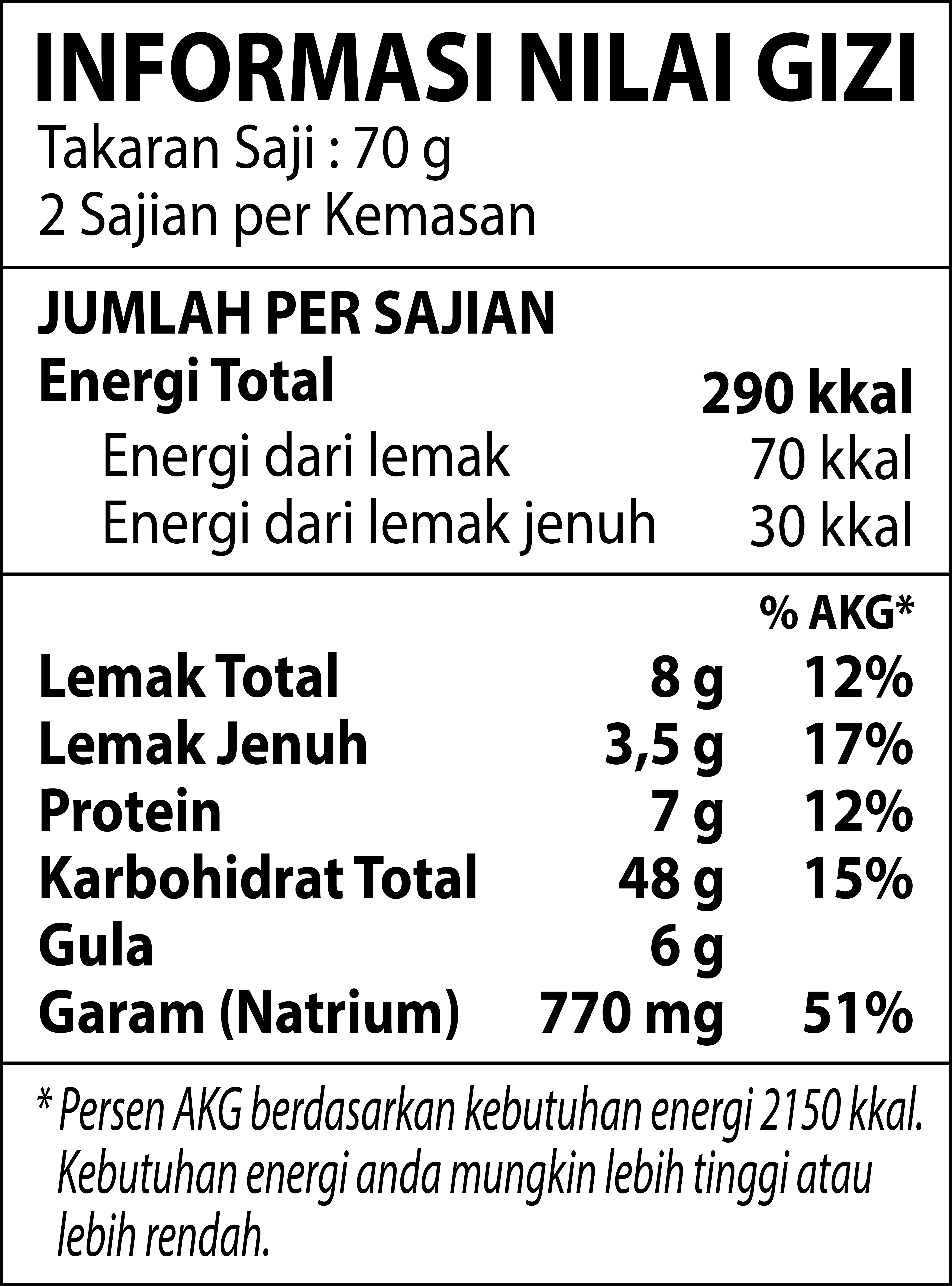 Saus: Air, Kecap (mengandung kedelai), Gula, Perisa Sintetik Ayam (mengandung penguat rasa Dinatrium 5'-Ribonukleotida, Mononatrium L-glutamat, Antiokisan dl-alfa tokoferol), Perisa Sintetik Ayam, Bumbu Rasa Cabe Habanero (0,5%), Bubuk Lada, Minyak Kedelai, Bawang Bombay, Minyak Cabe (0,3%), Cabe Bubuk (0,3%), Bawang Putih, Perisa Sintetik Ayam, Pati Kentang Termodifikasi, Cabe Bubuk (0,1%), Ekstrak Paprika, Lada Hitam Bubuk, Bumbu Rasa Kari (mengandung penguat rasa dinatrium 5-ribonukleotida), Bumbu.Bumbu Bumbu Bubuk: Bumbu Kedelai Hitam (3%) (mengandung kedelai), Gula, Bawang Bombay Bubuk, Penguat Rasa Mononatrium L-glutamat, Pewarna Alami Karamel III, Perisa Sintetik Sapi, Krimer Minuman (mengandung isolat protein kedelai), Bawang Bombay, Perisa Sintetik Ayam (mengandung penguat rasa dinatrium 5' ribonukleotida), Ekstrak Ragi, Ekstrak Cabe (0,2%), Perisa Sintetik Ayam (mengandung penguat rasa dinatrium 5' ribonukleotida, antioksidandl-alfa tokoferol), Bumbu Rasa Habanero, Penguat Rasa Dinatrium 5'Ribonukleotida, Perisa Sintetik Ayam.Kondimen Flake : Bawang Bombay, Pakcoy, Bumbu Sayuran (mengandung gluten, isolat protein kedelai, pewarna alami Karamel III amonia proses)