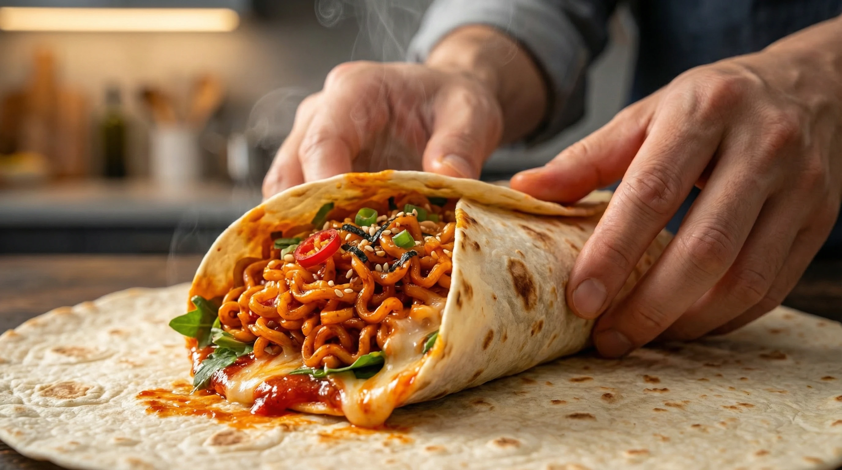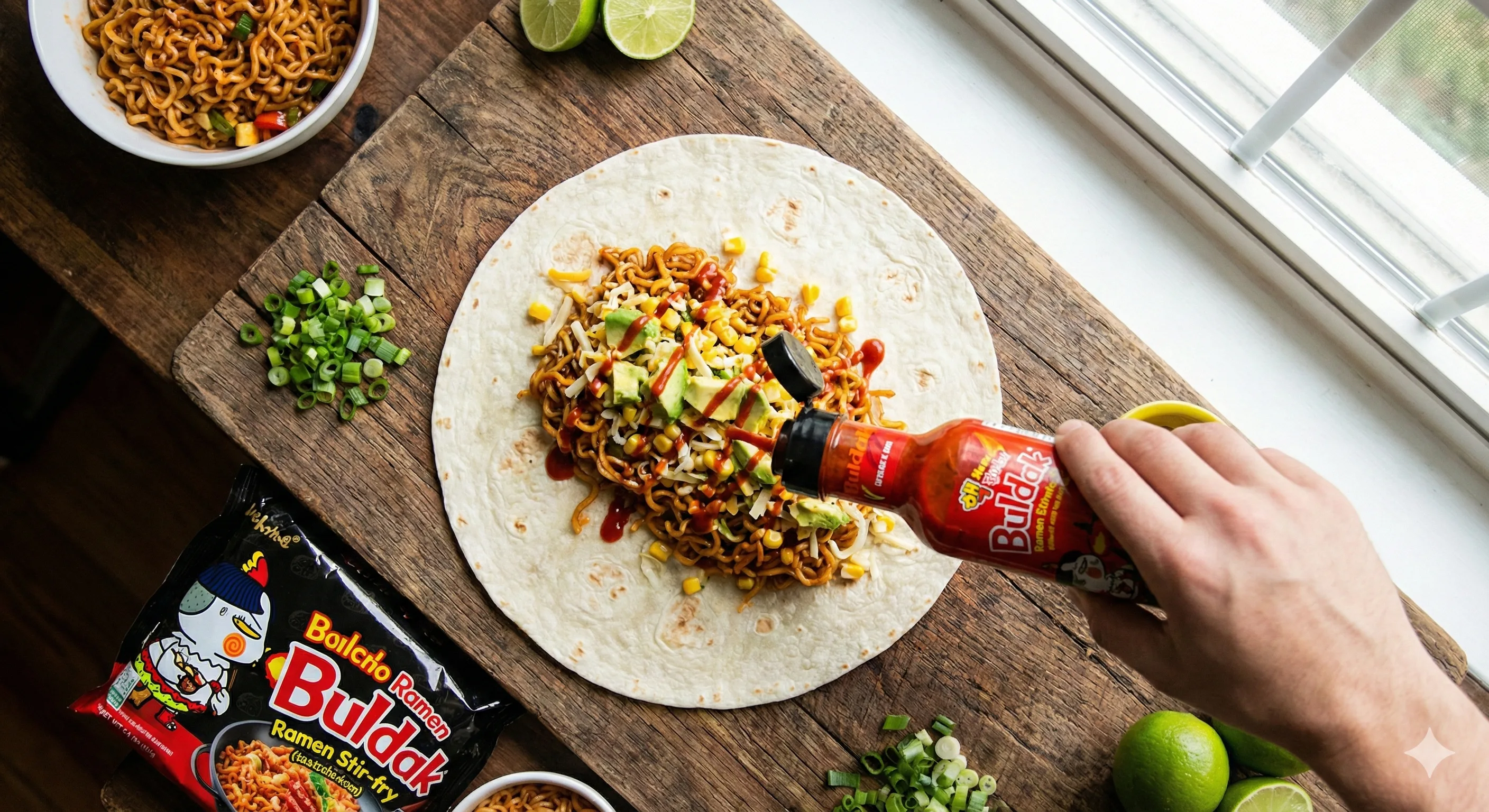불닭 부리또 레시피는 한국의 인스턴트 라면이 멕시코 북부의 요리를 만나, 미국식 변형을 거쳐 완성된 독특한 요리입니다. 불닭볶음면이라는 재료에 여러 나라의 식문화가 결합되어 있다는 점이 너무나도 매력적이죠.