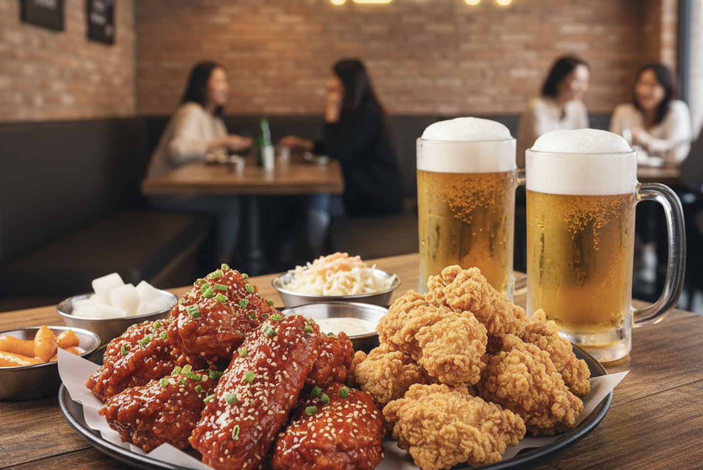 Chimak has become the symbol of Korean late-night culture. The word is the combination of "Chicken" and "Maekju", which means “beer”. Chicken is naturally ideal: it is easy to share, satisfying in one bite, and pairs perfectly with cold drinks like beer or soda that "reset" the palate. Chimak became a "culture" because it fits nighttime entertainment, such as sports, dramas, and gaming, almost perfectly. The crunch of the chicken satisfies late-night cravings instantly.