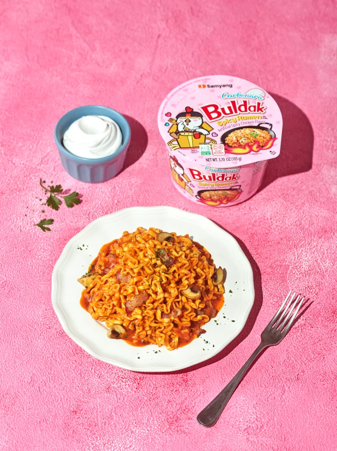 Order Carbonara Buldak Cup Noodles on Amazon—your next campfire favorite 🛒